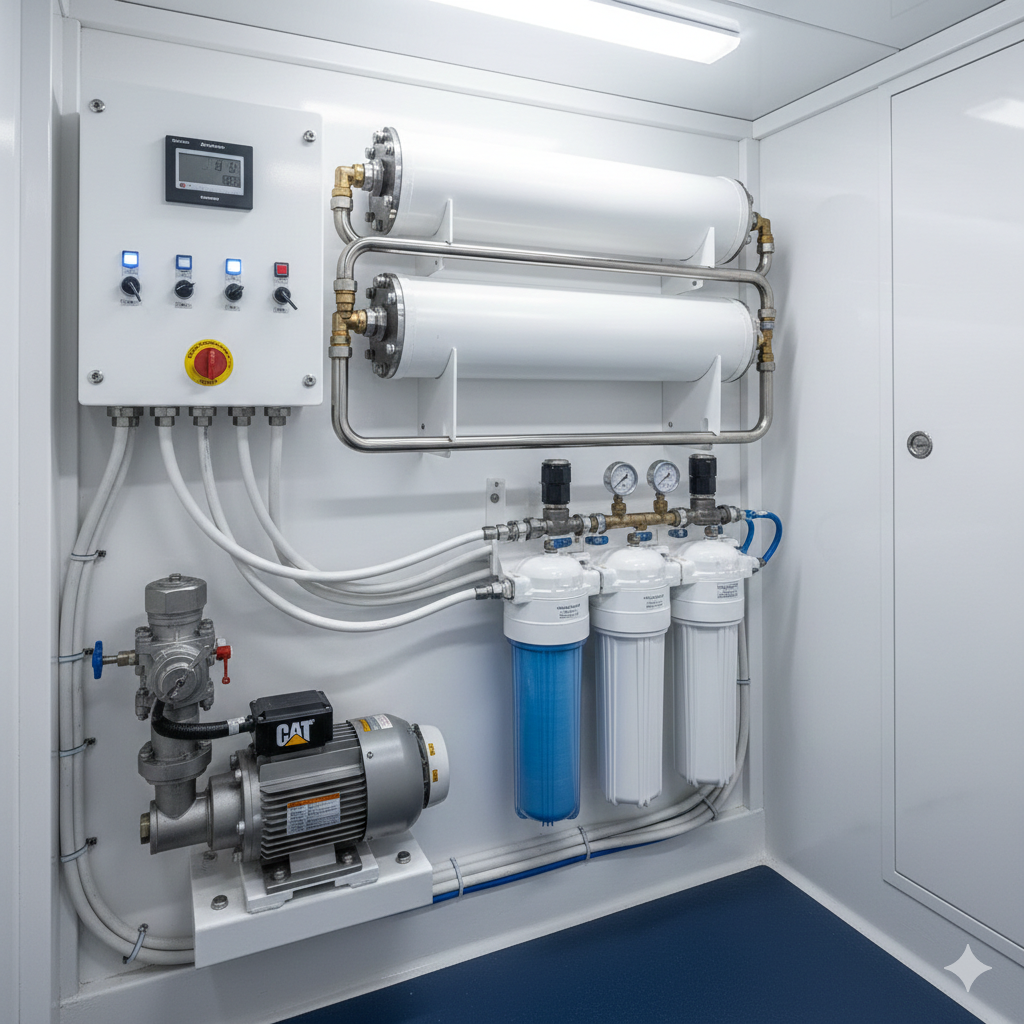 Plumbing: Fresh, watermaker flow testing, and bilge/sump pump reliability.
